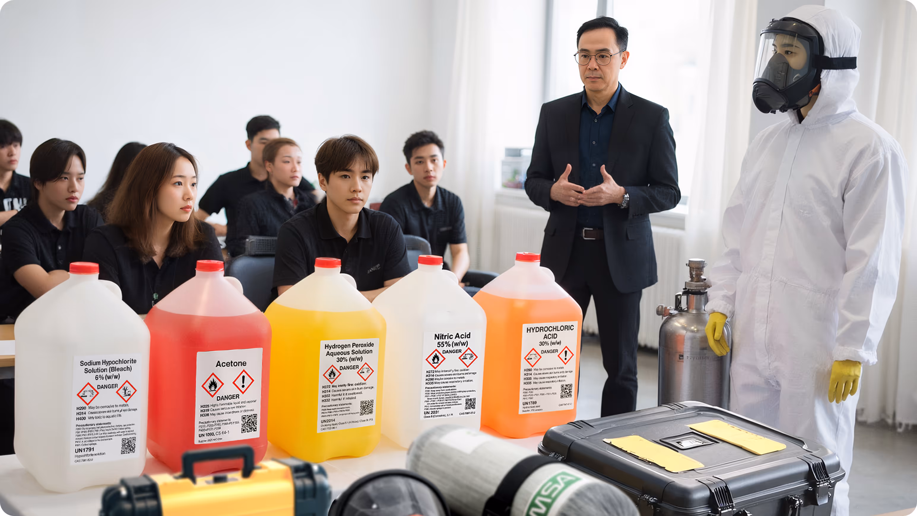 ✔ เหมาะกับพนักงานคลัง/ผสม/ผลิต/แล็บ/ซ่อมบำรุง และหัวหน้างานที่เกี่ยวข้องกับสารไวไฟ กัดกร่อน เป็นพิษ หรือปฏิกิริยาสูง เนื้อหาครอบคลุมการจำแนก GHS, การแยกเก็บ, การใช้อุปกรณ์ป้องกัน, จุดส่งมอบงานปลอดภัย และการตอบโต้เหตุรั่วไหลอย่างเป็นระบบ